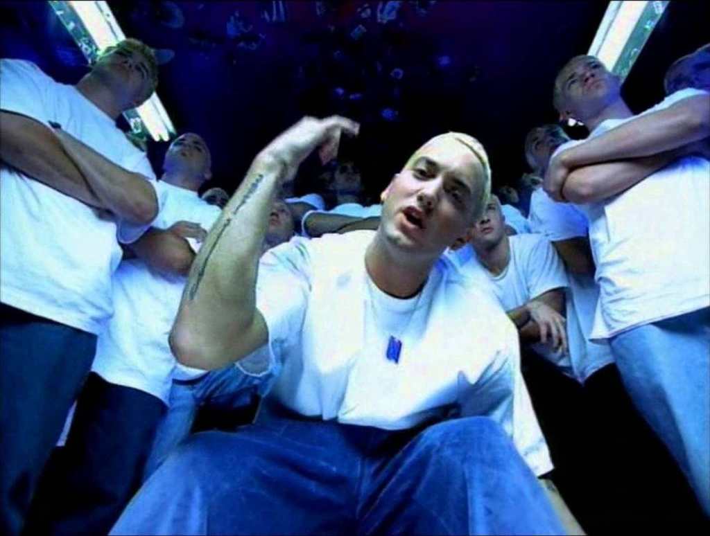 The video featured multiple Eminem clones, all in the same outfits. And his most memorable scene is when Eminem posed as Britney Spears. Classic.